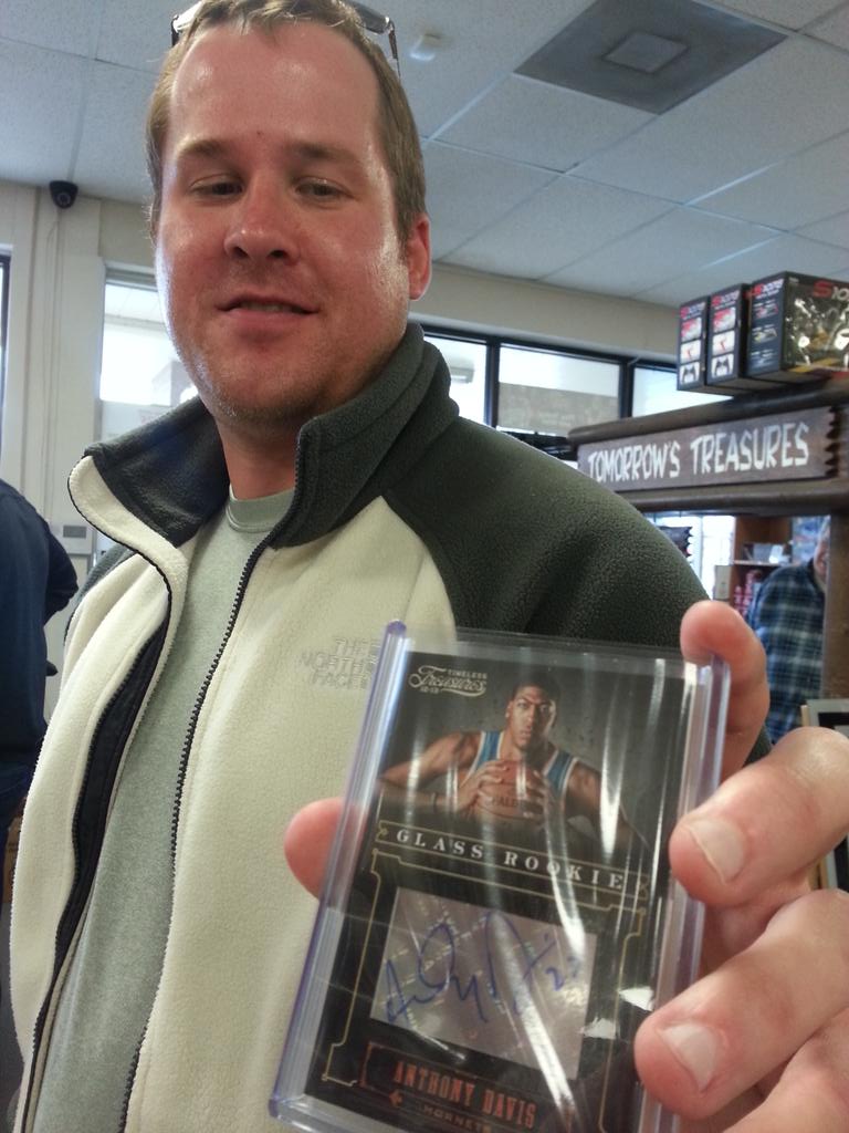 Scott hadn't collected in 20 years when he decided to check out Sports Cards Plus. He saw all the LOW, LOW, LOW Prices. He saw all the great hits pulled by our customers as he visited our store and quickly learned about The Legend of The Super Hit Factory. Scott gave it a try and here he is with his Anthony Davis 2012-13 Timeless Treasures Autographed RC. As Scott left, he said, "That was fun. I'll be back."