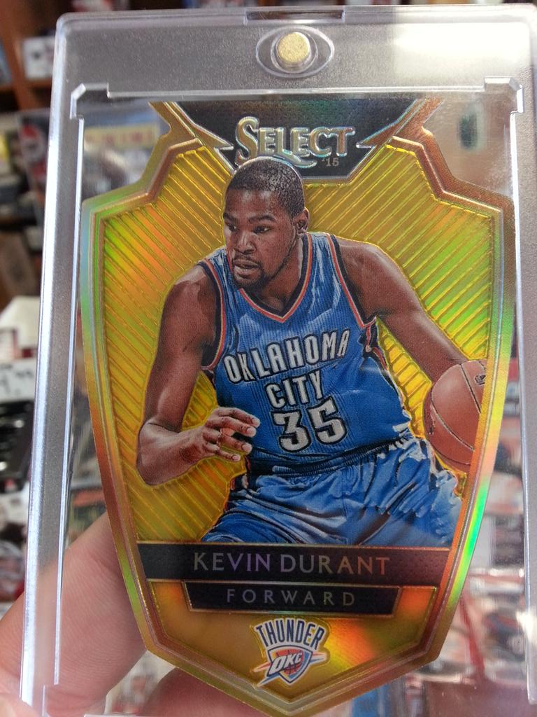 Aggie Will came in this week for more 2014-15 Panini Select Basketball for ONLY $110 EVERYDAY at Sports Cards Plus. Will pulled this Kevin Durant Gold Prizm Die Cut Shield and a (see below) "1 of 1" Deron Williams City to City Dual Jersey Patch Black Prizm.